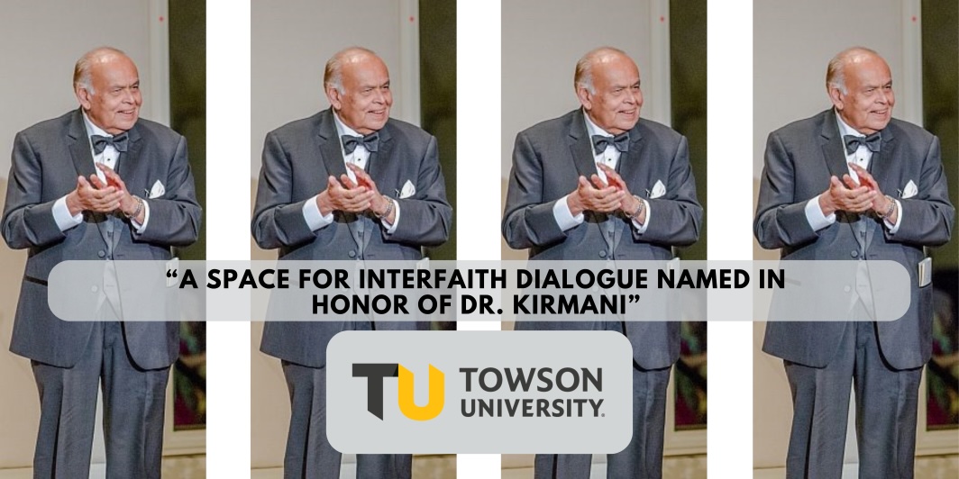 On October 6, 2025, Towson University and Albert S. Cook Library honored Dr. Sanaullah’s lifelong commitment to unity by dedicating the Kirmani Circle for Faith, Spirituality & Peace on the 2nd floor of the library. This space is intended to serve as a gathering point and discussion space for peaceful dialogue amongst the interfaith community. It is a welcoming environment for people of all backgrounds to engage in dialogue, exchange ideas, and build understanding. It serves as a living legacy of Dr. Kirmani’s vision.